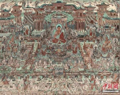西方凈土變-莫高窟第217窟(盛唐)。敦煌研究院供圖