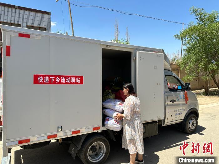 2023年7月14日,民眾在敦煌快遞下鄉(xiāng)流動驛站取件。(資料圖) 戴文昌 攝