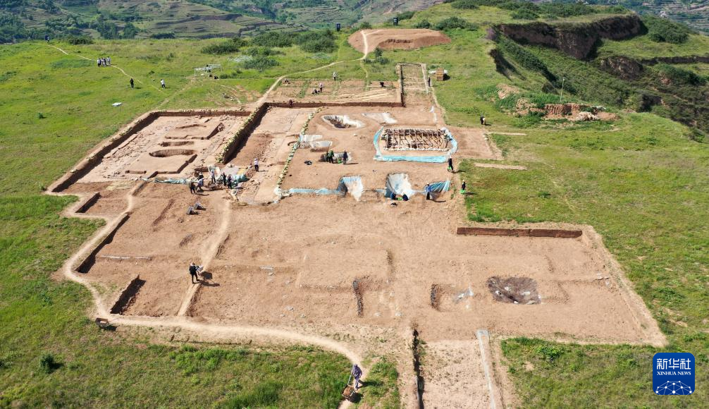 這是2022年6月10日拍攝的甘肅省隴南市禮縣四角坪遺址考古發(fā)掘現(xiàn)場(chǎng)(無(wú)人機(jī)照片)。新華社記者 陳斌 攝