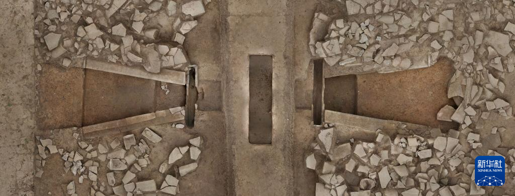 這是甘肅省隴南市禮縣四角坪遺址的排水設(shè)施(2024年1月8日攝,無(wú)人機(jī)照片)。新華社發(fā)(四角坪遺址考古隊(duì)供圖)
