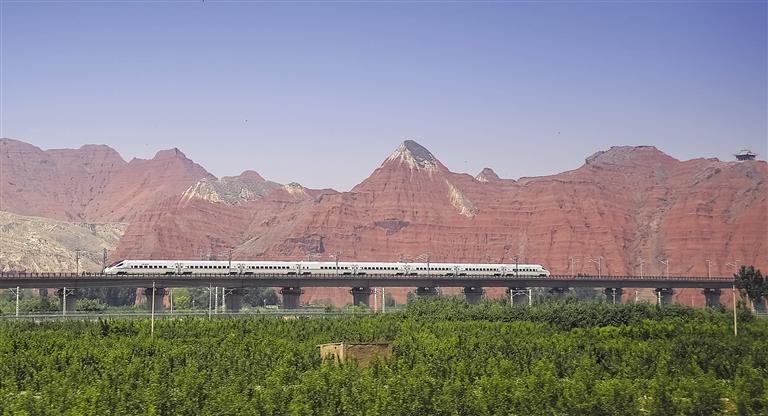 動(dòng)車組列車穿越丹霞地貌