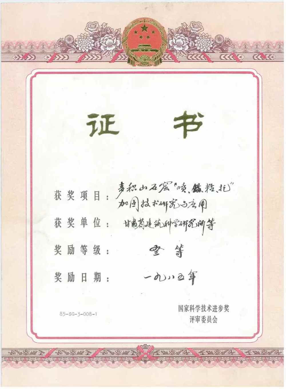 鑒定認(rèn)為,麥積山石窟維修加固工程在總結(jié)了國(guó)內(nèi)巖體加固經(jīng)驗(yàn)的基礎(chǔ)上,結(jié)合麥積山石窟巖體的特點(diǎn)和不改變?cè)瓲畹脑瓌t,成功地采用了“噴、錨、粘、托”綜合加固技術(shù),為保護(hù)石窟文物開(kāi)創(chuàng)了一條新的途徑。1985年,甘肅建科院榮獲國(guó)家科技進(jìn)步獎(jiǎng)三等獎(jiǎng)、甘肅科技成果獎(jiǎng)二等獎(jiǎng)。