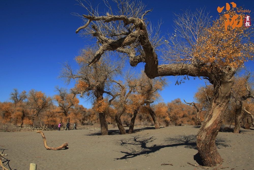 由于風(fēng)沙和干旱的影響,很多胡楊樹造型奇特,姿態(tài)萬千,高大粗壯的身軀,或彎曲倒伏,或仰天長嘯,或靜默無語,或豪氣萬丈,讓人感受到原始生命的壯美。