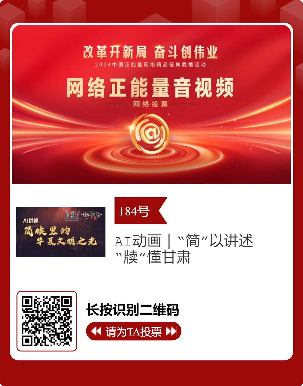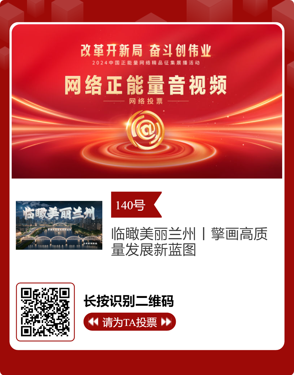 2024中國(guó)正能量網(wǎng)絡(luò)精品,蘭州入圍作品邀您投票!