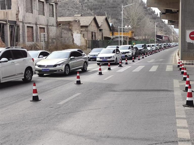 3月22日上午8時(shí),通往大砂坪公墓區(qū)、甘肅臥龍崗人文紀(jì)念園的佛慈大街上車(chē)流量明顯增多,雖然車(chē)輛行駛速度緩慢,但整體秩序良好。在大砂坪橋公交站處準(zhǔn)備乘坐清明節(jié)掃墓臨時(shí)專(zhuān)線(xiàn)公交車(chē)前往公墓祭掃的市民排起了長(zhǎng)隊(duì)。墓園附近,等待進(jìn)入的車(chē)輛也排起了長(zhǎng)隊(duì),蘭州市交警支隊(duì)河北大隊(duì)交警引導(dǎo)祭掃車(chē)輛安全進(jìn)出墓園停車(chē)場(chǎng),保障路面交通暢通。