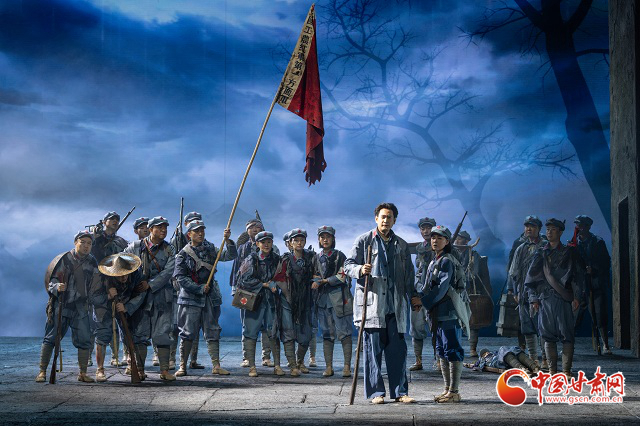 該劇以紅軍長征途經(jīng)甘肅哈達鋪的重要歷史事件為背景,通過藝術化的舞臺呈現(xiàn),生動展現(xiàn)了革命先輩的堅定信念與偉大精神。全劇通過人物群像與歷史瞬間的交織,彰顯信仰力量與軍民深情,以時空交織的敘事結構,穿插毛澤東與周恩來回憶對話的閃回場景,通過“序—八場—尾聲”的結構,串聯(lián)紅軍在哈達鋪的休整與決策過程,兼具歷史縱深感與戲劇張力。
