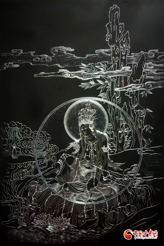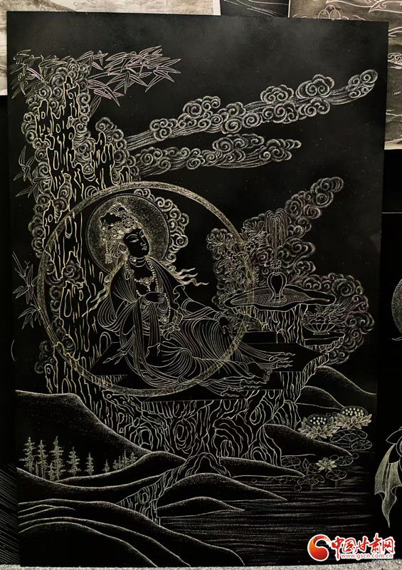 對(duì)張兆武來說,做鍥金畫從來不是“照貓畫虎”。他琢磨傳統(tǒng)書畫的筆墨、篆刻的力道,慢慢攢出了自己的一套刀法;創(chuàng)作時(shí),心里裝的也全是敦煌——從莫高窟第112窟里“反彈琵琶”的靈動(dòng)舞姿,到傳說中“九色神鹿”的溫潤(rùn)模樣,都成了他刻刀下的主角。他刻出的飛天,飄帶像帶著風(fēng);刻出的菩薩,眉眼間透著莊重;金屬的光澤在畫面上流轉(zhuǎn),明明是靜態(tài)的畫,卻像在講一段活的敦煌故事。“不用多說什么,看過的人能懂這份美。”張兆武說的這份“懂”,恰恰打破了文化和語(yǔ)言的距離,讓東方的古老美學(xué),和全世界的現(xiàn)代審美碰出了共鳴。