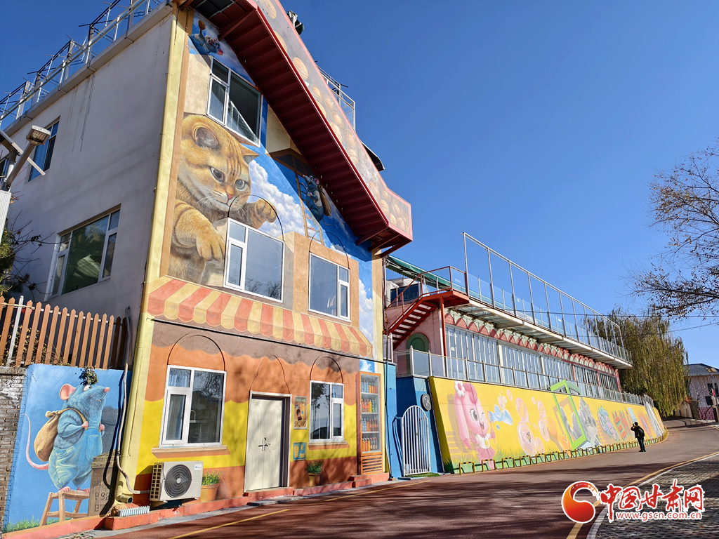 這些彩繪是鄉(xiāng)村振興的“魔法筆”,低成本墻繪讓山間村落迸發(fā)文旅活力:既美化了村民家園,又讓蘭山成了游客青睞的打卡地;“0931號(hào)”火車手繪更以蘭州特產(chǎn)與城市記憶為內(nèi)核,為童話場(chǎng)景添上了在地文化的獨(dú)特印記。在“童話賦能鄉(xiāng)村”的探索中,隴南市武都區(qū)的五馬童話小鎮(zhèn)則呈現(xiàn)出另一種精彩形態(tài),與蘭山的彩繪形成了互補(bǔ)的美好圖景。