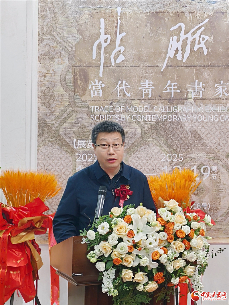 12月14日上午,“帖脈溯望——當(dāng)代青年書家行草作品展”在甘肅美術(shù)館開幕。中國書法家協(xié)會理事、甘肅省文聯(lián)黨組成員、副主席陳新長在開幕式致辭中表示,河北美術(shù)學(xué)院七位青年教師的作品展,以九零后的視角重新解讀二王法脈、唐草風(fēng)神與晚明意趣,作品既有晉唐筆法的精微細膩,又有當(dāng)代審美的開闊格局。