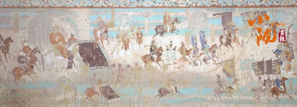 在甘肅璀璨的石窟藝術(shù)中,馬早已超越了具象的生靈,化作融入筆墨丹青的文化靈韻。莫高窟的壁畫里,馬的形象栩栩如生、各具風(fēng)情:西魏249窟的青藍(lán)色翼馬,肩生雙翼、身姿輕盈,與仙人并肩起舞,藏著古人對天空與自由的向往;晚唐12窟的作戰(zhàn)圖中,戰(zhàn)馬披甲馳騁、泅水掙扎,真實(shí)還原了古戰(zhàn)場的慘烈與悲壯;盛唐時(shí)期的駿馬畫像,體態(tài)雄壯、氣度軒昂,每一筆勾勒都藏著時(shí)代的審美與家國情懷。