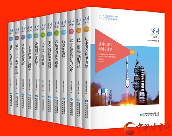 《讀者叢書·社會主義核心價值觀讀本》(共12卷)是中宣部、國家新聞出版廣電總局2017年主題出版重點(diǎn)出版物之一,于2017年7月由甘肅人民出版社出版發(fā)行。叢書圍繞“富強(qiáng)、民主、文明、和諧、自由、平等、公正、法治、愛國、敬業(yè)、誠信、友善”社會主義核心價值觀相關(guān)主題,從各種圖書、報(bào)刊、網(wǎng)站上精選600余篇優(yōu)美文章匯編成冊,每冊凸顯一個主題,為讀者奉上了一份精神佳肴和文化大餐。
