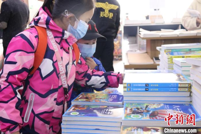 蘭州書店復工后,孩童在店內挑選讀物?!¢Z姣 攝