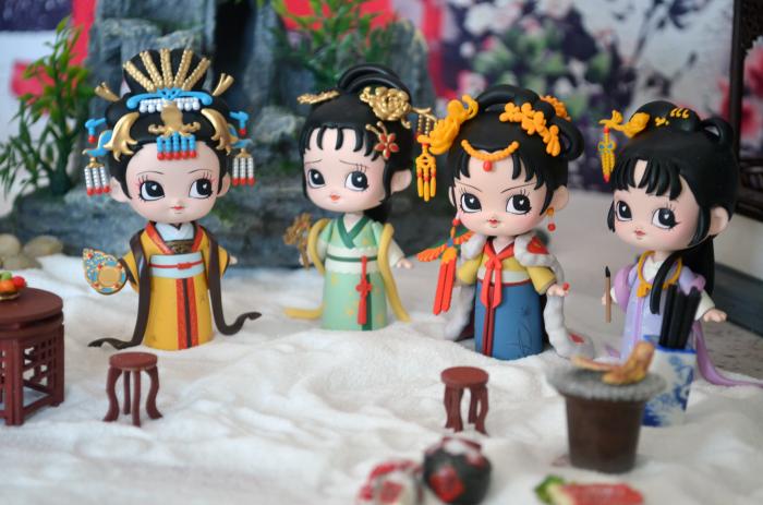 90后楊喆是這些呆萌娃娃的主創(chuàng)者。她在接受中新網(wǎng)記者采訪時說,推出“《紅樓夢》盲盒”娃娃,是自己的夢想之一。