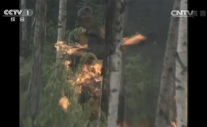“大戰(zhàn)紅孩兒”中,紅孩兒放火燒孫悟空。這一幕也是很真實(shí)的拍攝。圖片來(lái)源:82版《西游記》視頻截圖
