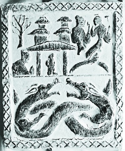 四川漢畫像石拓片,右上方為人首蛇身的伏羲女媧。圖片選自《吾國與吾名——中國歷代國號(hào)與古今名稱研究》