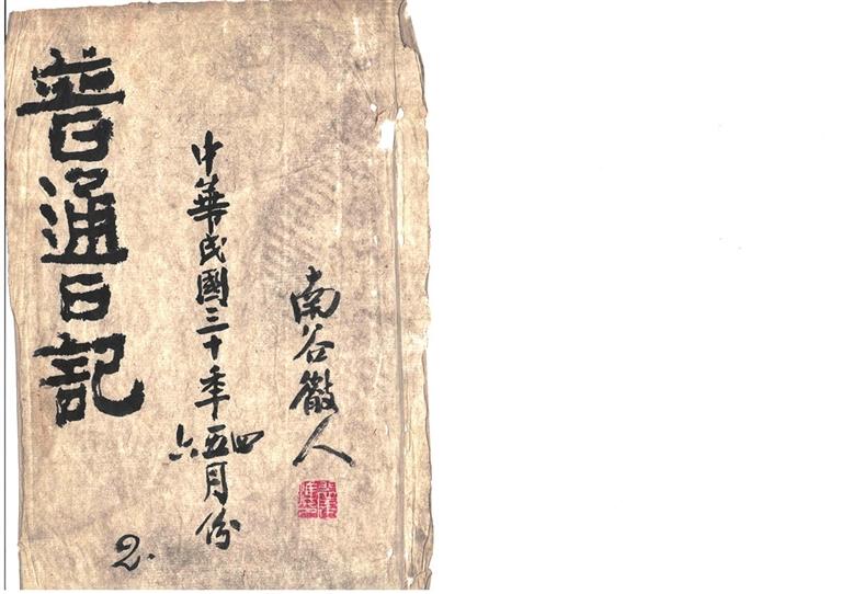 金城古玩城軒潤(rùn)堂主人馬先生,近日重金收購(gòu)一冊(cè)裴建準(zhǔn)《普通日記》,行書(shū)寫(xiě)本,雙頁(yè)折疊裝訂,凡66面。面長(zhǎng)31厘米,闊24厘米。每面十行字,行22、23、24字不等。封面題三行字:左上題“普通日記”四大字,下題阿拉伯?dāng)?shù)字“2”;中題“中華民國(guó)三十年四、五、六月份”;右題“南谷山人”,鈐“裴建準(zhǔn)印”白文印。何以稱(chēng)《普通日記》呢?他是否還有其他《日記》待考。