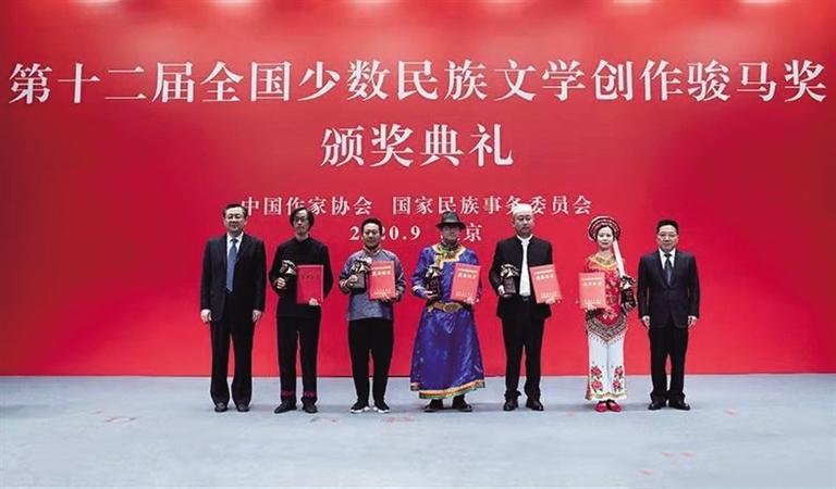 也許有的讀者有所不知,全國(guó)少數(shù)民族文學(xué)創(chuàng)作”駿馬獎(jiǎng)”是與包括魯迅文學(xué)獎(jiǎng)、茅盾文學(xué)獎(jiǎng)和全國(guó)優(yōu)秀兒童文學(xué)獎(jiǎng)在內(nèi)的我國(guó)具有最高榮譽(yù)的四大文學(xué)獎(jiǎng)。近日,記者采訪了藏族詩(shī)人扎西才讓,來(lái)自甘南的他骨血里帶著藏族的浪漫與豪放,黝黑的臉上印著高原烈日親吻的痕跡,而陽(yáng)光般的笑容仿佛帶著熾熱的光芒,逼退了一切陰霾。