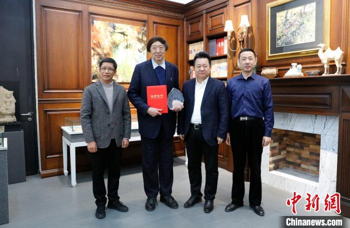 圖為主辦方卻專程來到天津大學(xué)馮驥才文學(xué)藝術(shù)研究院,送獎(jiǎng)上門。 馮驥才文學(xué)藝術(shù)研究院供圖