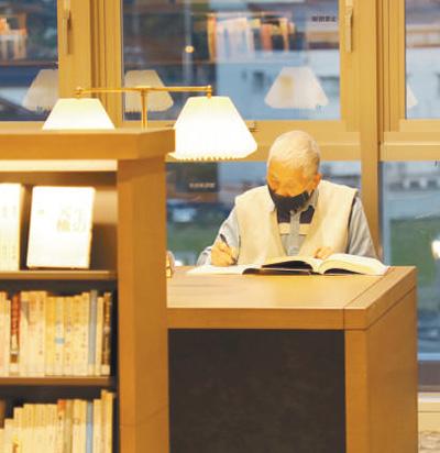 一位老年讀者正在日本高梁市圖書館內(nèi)閱讀。(劉軍國(guó) 攝)