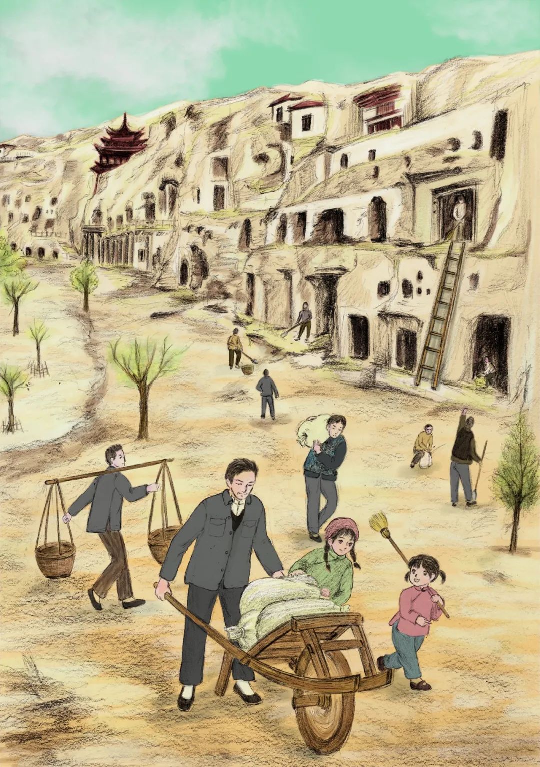 這也是一本有時(shí)代縱深感的書(shū),它從欣潔失去媽媽的抗戰(zhàn)時(shí)期寫(xiě)起,一直寫(xiě)到中國(guó)人民解放軍接管敦煌。它寫(xiě)欣潔一家坐著敞篷卡車(chē),一路顛簸從成都來(lái)到敦煌,作品對(duì)沿途自然風(fēng)貌和人情民俗的多彩變化都有生動(dòng)描寫(xiě)。它寫(xiě)欣潔一家在敦煌的小土屋里安家,既有時(shí)代地域特色又有家庭的溫馨和暖陽(yáng)。它寫(xiě)一個(gè)小女孩如何從對(duì)莫高窟的一無(wú)所知到逐漸認(rèn)知、理解再到熱愛(ài)的成長(zhǎng)歷程,充分表現(xiàn)了敦煌人一開(kāi)始就具有的積極上進(jìn)的理想和精神。同時(shí)作者也力圖通過(guò)這樣一個(gè)故事告訴我們,一個(gè)孩子是怎樣認(rèn)識(shí)并理解敦煌的。