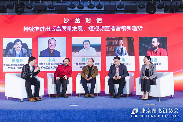 沙龍對(duì)話環(huán)節(jié)中,生活·讀書·新知三聯(lián)書店總編輯肖啟明,機(jī)械工業(yè)信息研究院院長、機(jī)械工業(yè)出版社社長李奇,華東師范大學(xué)出版社董事長、社長王焰,國家一級(jí)作家雪漠,共同探討短視頻直播營銷心得、經(jīng)驗(yàn)及趨勢。