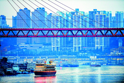 長(zhǎng)江和嘉陵江在朝天門碼頭交匯,兩江四岸把重慶分割成了多個(gè)天然組團(tuán),各組團(tuán)之間的交通除了橋梁隧道還有索道。建于1984年的長(zhǎng)江索道,最初是重慶市民的交通工具。那時(shí)候,重慶主城區(qū)剛剛建成一座長(zhǎng)江大橋,山路崎嶇,兩江阻隔,自行車騎不得,公交車又少得很,市民出行只能感嘆“蜀道難”。而長(zhǎng)江索道,讓渝中和南岸這兩個(gè)主城核心區(qū)的市民來往自如。三四十年光景,彈指一揮間,山城重慶一座座跨江大橋橫空出世,一座座摩天大樓騰空而起,日漸顯現(xiàn)國際化都市的風(fēng)范。當(dāng)軌道、地鐵、快速公交車聯(lián)成一張龐大的現(xiàn)代公交網(wǎng)之際,長(zhǎng)江索道的公交功能漸漸退化,觀光功能應(yīng)運(yùn)而生,竟從一個(gè)純樸的村姑變成了時(shí)尚的美女。2006年影片《瘋狂的石頭》上映后,它越來越火,游客排長(zhǎng)隊(duì)坐索道成為家常便飯。