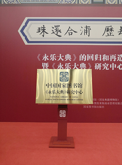 展覽開幕的同時,還舉辦了“國家圖書館《永樂大典》研究中心”成立揭牌儀式。該中心的成立旨在聯(lián)系組織國內外專家學者,對《永樂大典》進行更全面、更深入的研究,展示推廣其具有當代價值、世界意義的文化精髓。