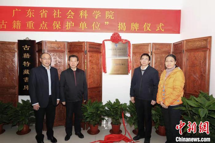 中新網廣州12月29日電 (記者 程景偉)記者29日從廣東省社會科學院獲悉,該院成功入選為“全國古籍重點保護單位”,并于近日舉行了揭牌儀式。