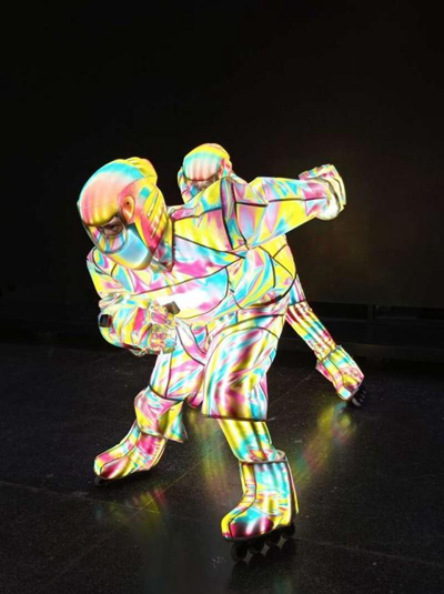 “未來冰球隊”演員肖遙和隊友身著表演服訓練。受訪者供圖