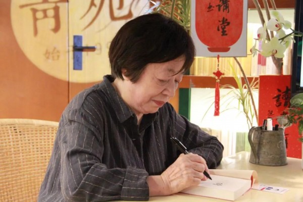 2020年楊本芬在青苑書(shū)店為讀者簽名