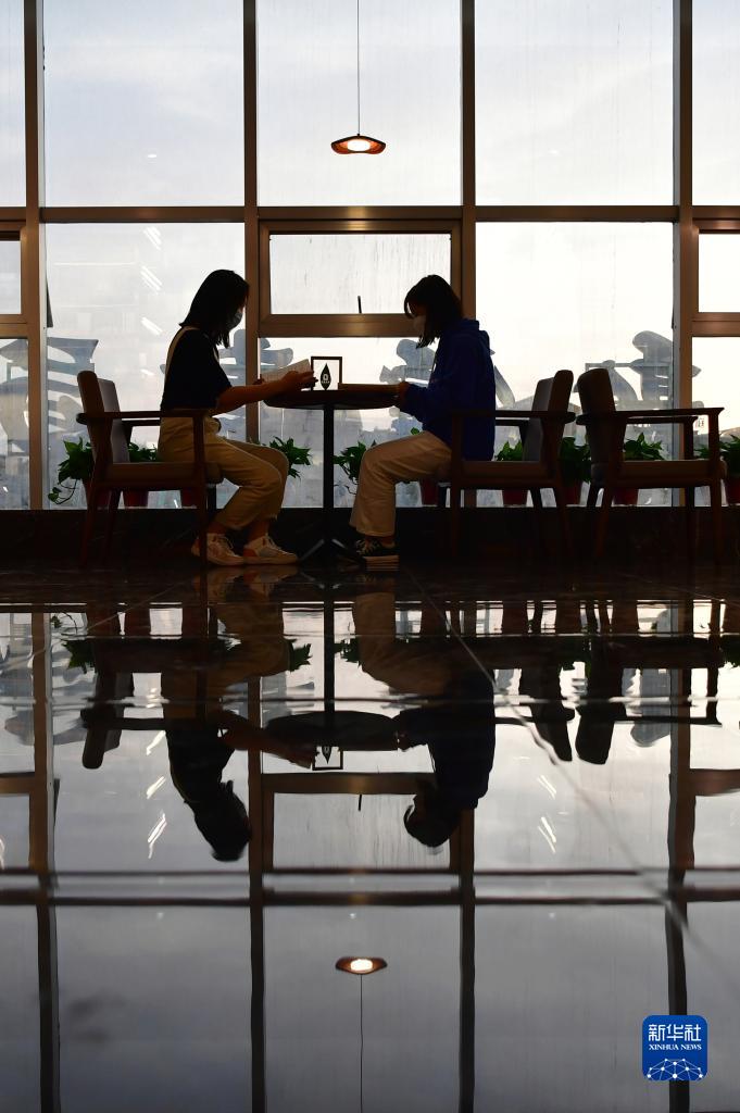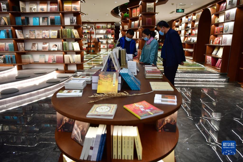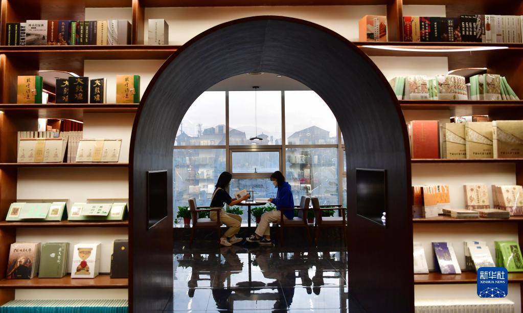 讀者在敦煌書局閱讀區(qū)看書(4月21日攝)。新華社記者 杜哲宇 攝
