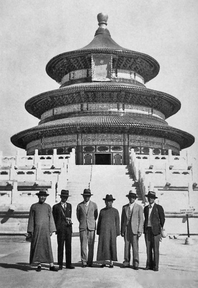 1935年5月9日,天壇圜丘壇開(kāi)工,朱啟鈐、梁思成、劉敦楨、林徽因等古建專家,作為工程的技術(shù)顧問(wèn),楊廷寶則以基泰工程司總建筑師的身份指導(dǎo)工程實(shí)施的全過(guò)程。圖為祈年殿修繕完工紀(jì)念照。資料圖片