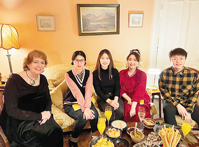 到愛爾蘭人家中做客、共度圣誕節(jié),對張靜瑄來說是新鮮的體驗。“那天晚上,我嘗到了許多圣誕節(jié)的特色美食,比如烤火雞、布丁等,我們幾名中國學生帶去了餃子,和老爺爺、老奶奶一同分享。席間,我們聊到春節(jié)和圣誕節(jié)的慶祝方式、對東西方家庭的意義等,這讓我切身體會到了不同國家的文化差異,也拓展了我的認知,是我難忘的珍貴回憶。”周姝蕓