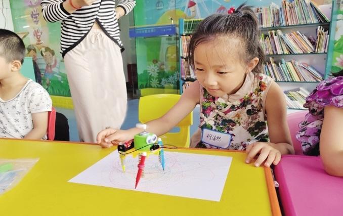 在手工創(chuàng)作環(huán)節(jié),主持人帶領孩子們拼裝可以自動涂鴉的機器人。孩子們一絲不茍地按照要求分別完成了模型組裝、線路連接、通電啟動等拼裝。當小機器人在高速旋轉中帶動畫筆起舞,在白紙上勾勒出一圈又一圈的彩色線條時,孩子們發(fā)出了興奮的驚嘆。