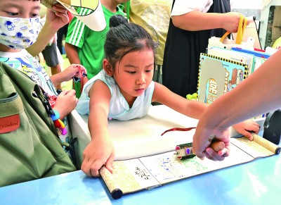 8月20日,國(guó)家圖書館少年兒童館舉辦“朱夏國(guó)風(fēng)日”傳統(tǒng)文化沉浸式體驗(yàn)活動(dòng),為小讀者創(chuàng)造別樣的閱讀體驗(yàn)。同時(shí),國(guó)家圖書館舉辦的多個(gè)展覽也成為孩子們避暑長(zhǎng)知識(shí)的好去處。