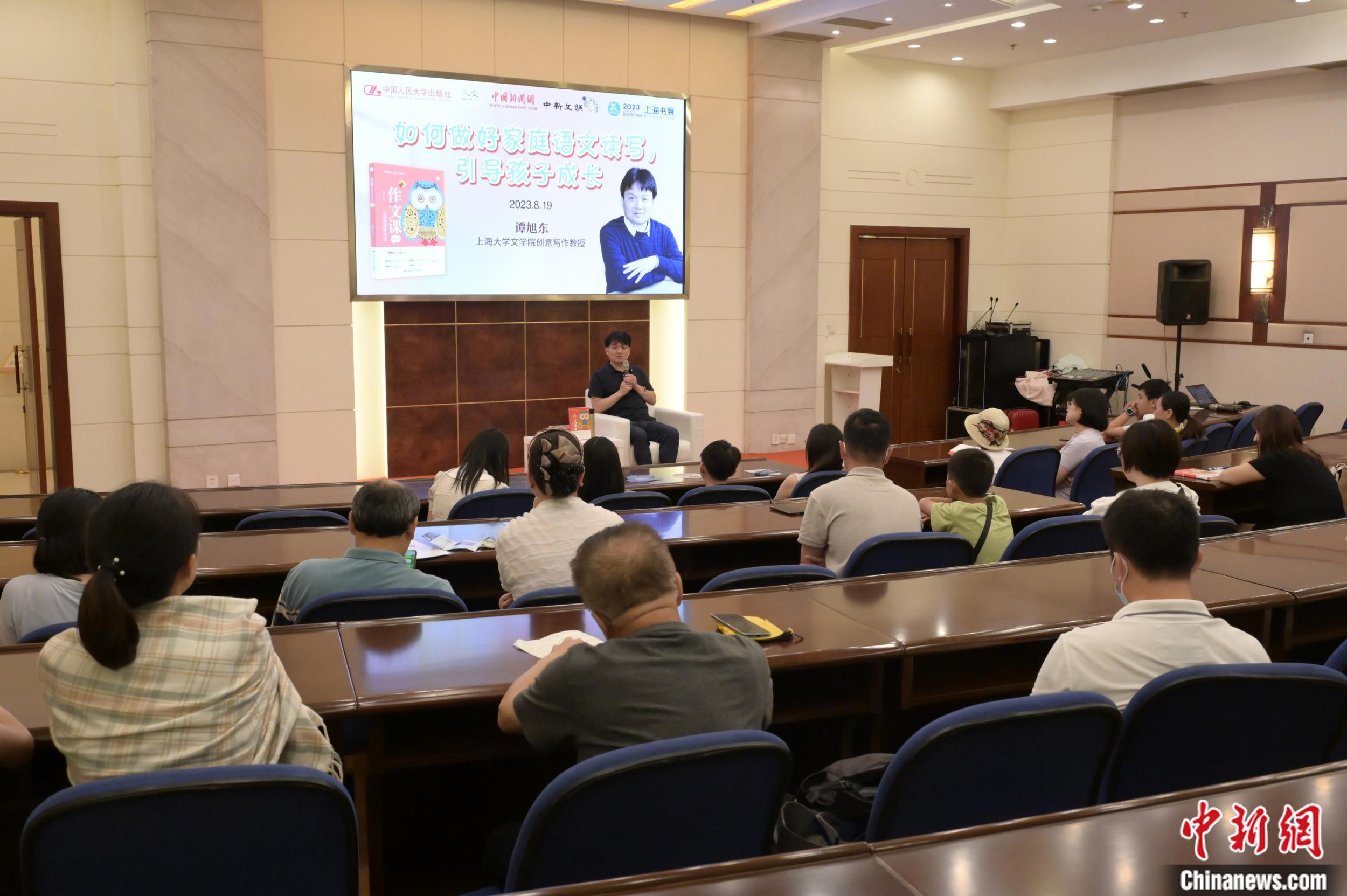 中新網(wǎng)8月22日電 8月19日晚,魯迅文學獎得主、上海大學文學院教授、博士生導師譚旭東攜新作《作文課:讓創(chuàng)意改變作文》,走進上海書展,暢談家庭語文教育。譚旭東以自己多年指導中小學語文教育的經(jīng)歷與大家分享:家庭語文讀寫的培養(yǎng),對孩子的成長和語文的進步,都非常關(guān)鍵。
