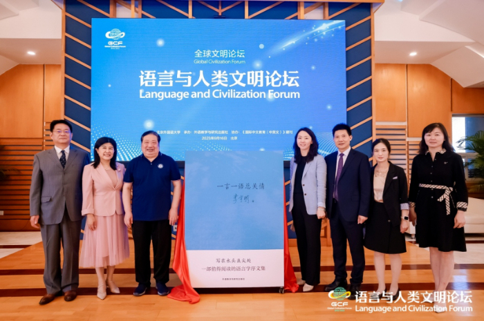 9月16日,由北京外國語大學(xué)主辦、外語教學(xué)與研究出版社承辦的“語言與人類文明”論壇在北京舉辦?;顒?dòng)上舉行了由中國辭書學(xué)會(huì)會(huì)長、北京語言大學(xué)教授李宇明撰著,外語教學(xué)與研究出版社出版的《一言一語總關(guān)情》新書發(fā)布儀式。北京外國語大學(xué)黨委副書記胡志鋼,外研集團(tuán)黨委書記、董事長、外研社社長王芳,李宇明教授,烏茲別克斯坦國立世界語言大學(xué)副校長阿利舍爾·阿比讓諾夫(AlisherAbidjanov)共同為新書揭幕。