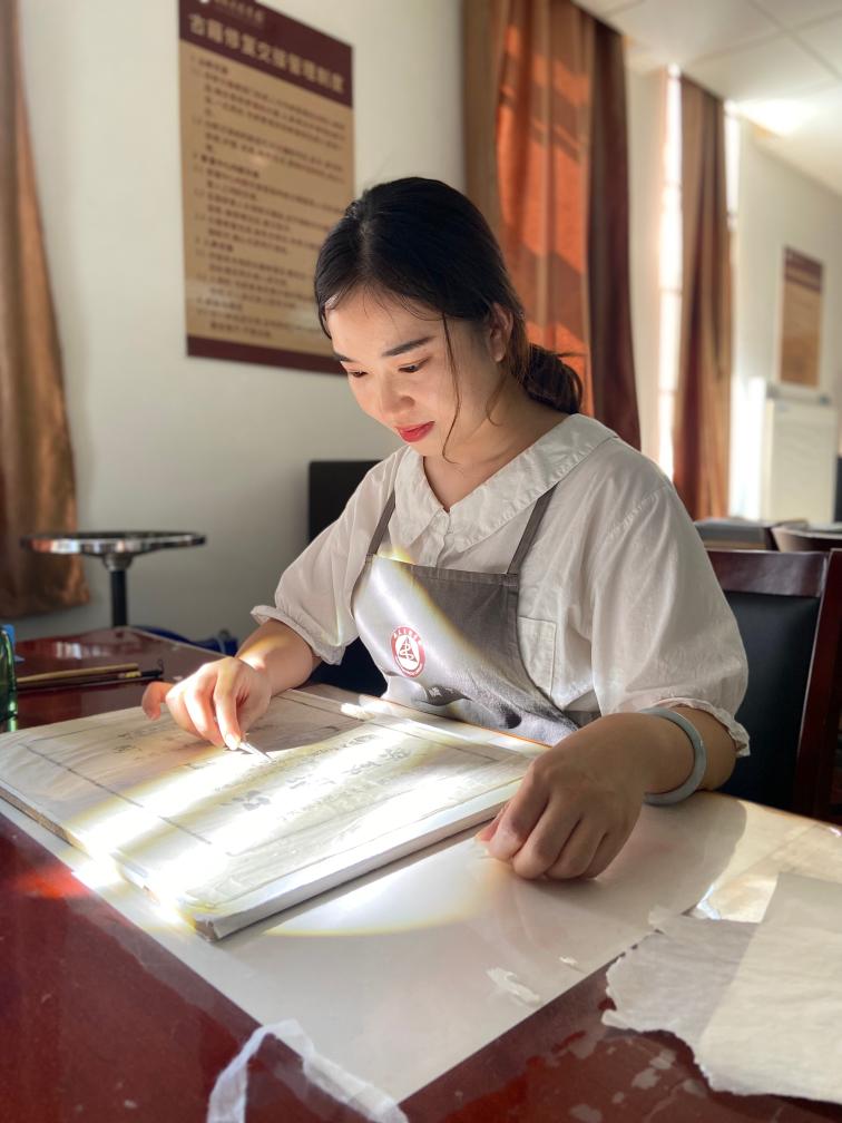 新華社合肥10月6日電(記者劉美子)清晨的陽光透過層疊的梧桐葉,灑落在有著百年歷史的安徽省圖書館建筑上,在這里,古籍修復(fù)師耿寧開始了一天的工作。她小心翼翼地揭起一張“傷痕累累”的待修書葉,對著光仔細(xì)查看,選配補(bǔ)書的紙張。這是古籍修復(fù)的重要一環(huán),耿寧絲毫不敢怠慢。