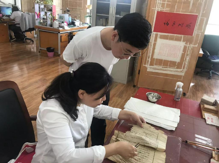 “古籍修復容不得任何失誤。每一道工序都要小心翼翼、屏息凝神。”王斌說,每拿到一本古籍,修復師首先要查看并記錄破損情況,同時制定修復方案,再根據方案對古籍進行清洗、配紙、修補、錘平、修剪、壓實、裝訂……整個過程前后有幾十道繁瑣工序。