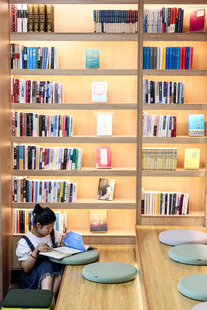 5月23日,讀者在日照市東港區(qū)城市書房櫻花園館閱讀。