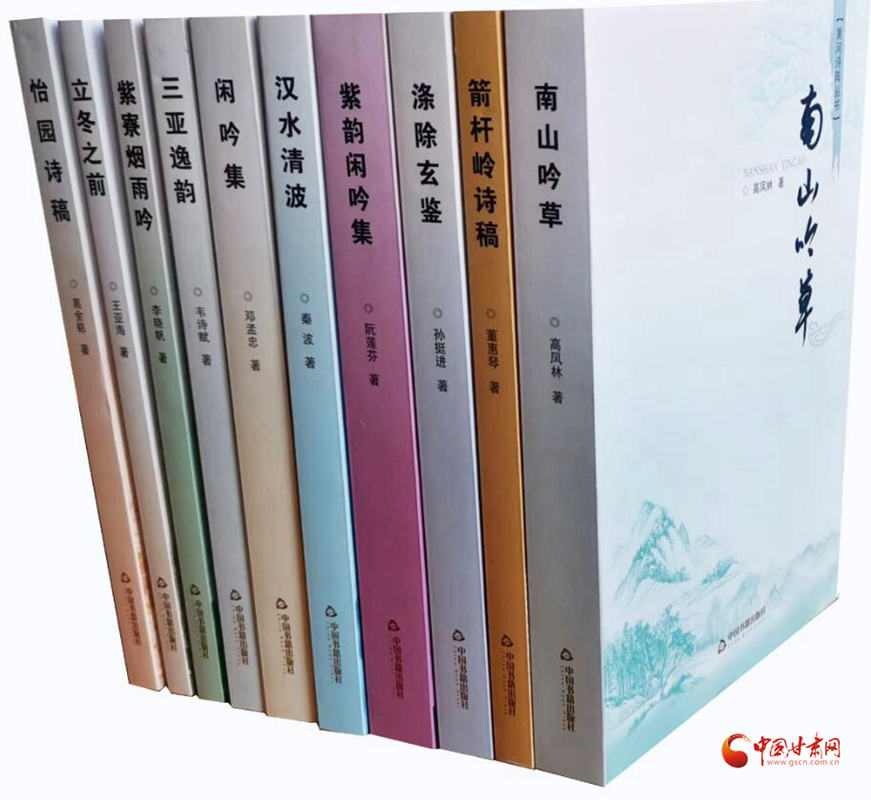該套叢書包括阮蓮芬著《紫韻閑吟集》、高鳳林著《南山吟草》、高全銘著《怡園詩稿》、秦波著《漢水清波》、董惠琴著《箭桿嶺詩稿》、孫挺進(jìn)著《滌除玄鑒》、韋詩賦著《三亞逸韻》、李曉帆著《紫寮煙雨吟》、鄧孟忠著《閑吟集》、王亞海著《立冬之前》等。甘肅省詩詞學(xué)會副會長,黃河詩社社長、《黃河詩陣》主編張平生為之作總序。