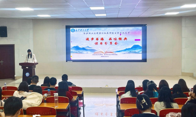 近日,長沙理工大學(xué)第十九屆研究生文化節(jié)“漫步書海,品味經(jīng)典”讀書分享會在該校云塘校區(qū)舉行,全校各學(xué)院100余名研究生參加。