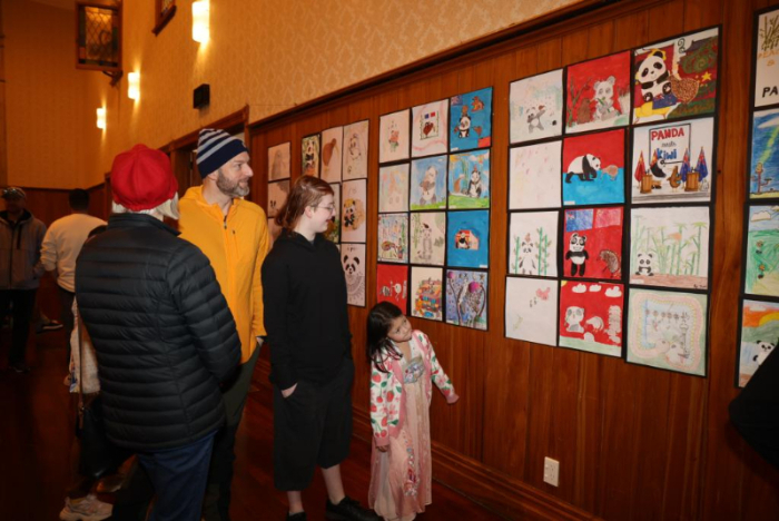 8月10日,在新西蘭懷帕市,人們?cè)?024中國(guó)主題圖書展暨“大熊貓遇見幾維鳥”中國(guó)新西蘭國(guó)際青少年藝術(shù)展上參觀。新華社發(fā)(孫學(xué)良 攝)