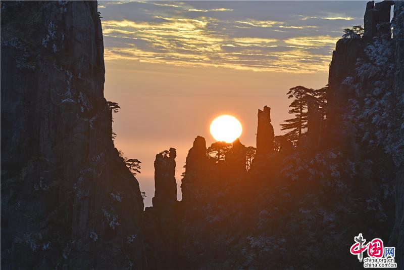 【點(diǎn)睛】新年伊始,黃山風(fēng)景區(qū)迎接今年的第一縷陽(yáng)光,在一片歡呼聲中太陽(yáng)跳出了地平線來(lái)到了黃山之巔。