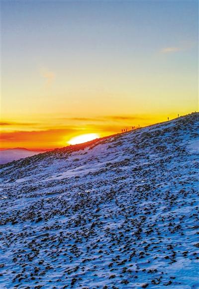 元旦當日早上6時30分,記者乘坐景交車前往巴爾斯圣山核心景區(qū)觀看日出,在抵達海拔3900米后徒步上山迎接2020年第一縷陽光??邕^及膝的雪,踏過堅硬的碎石堆,溜過光滑的冰面,抵達了海拔4100米最佳觀賞日出點,等待著新年第一縷陽光刺破蒼穹、越過遠處的雪山之巔照耀大地。7時50分左右,陽光沖破云層,遠處的雪山像是被鑲了一道金邊,此時只覺心靈與大山融為了一體,只有靜靜地等待。不知不覺中,陽光逐漸刺眼起來,這才意識到2020年第一抹陽光,承載著令人希冀的美好愿望已來到我們身旁。 蘭州晨報/掌上蘭州記者 黃芃