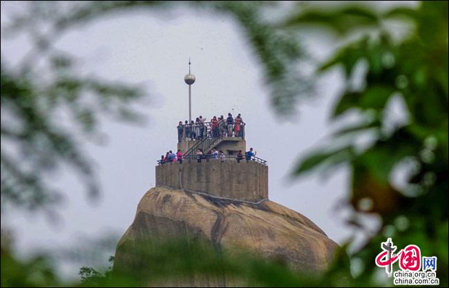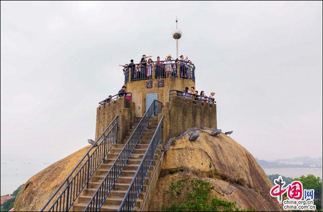 說(shuō)到自然風(fēng)光,便不能不提日光巖——這島上的最高峰。日光巖別名“晃巖”,相傳1641年,鄭成功來(lái)到此地,見(jiàn)此地風(fēng)景勝過(guò)吉林日光山,便把“晃”字拆開(kāi),稱之為“日光巖”。要登臨此巖,一窺日光,便要辛勞走一段山路。其間渾圓的巨石層出不窮,蒼郁的古樹(shù)隨處可見(jiàn),更有閩南大厝、名人題字與這些自然風(fēng)景相得益彰。于是游人往往在心曠神怡中,路過(guò)“九夏生寒”“鷺江龍窟”,經(jīng)由“閩海雄風(fēng)”“古避暑洞”,不知不覺(jué)間,來(lái)到巖頂?shù)钠脚_(tái)。立定此處,憑欄遠(yuǎn)望,只見(jiàn)輕靈的云天近在咫尺,島上的屋宇盡收眼簾——別提有多么愜意!難怪有詩(shī)人寫道:“一葉輕舟破霧霾,波濤滾滾此登臺(tái)。日光巖上憑欄望,隔岸清風(fēng)過(guò)海來(lái)。”(陳仁德句)