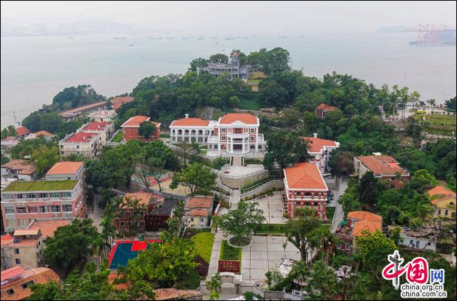如果有這樣一座島嶼——遠(yuǎn)處是一方寧?kù)o的藍(lán)天,近處是一片幽深的綠樹(shù),藍(lán)與綠之間,是逶迤而去的清水紅磚……極目遠(yuǎn)眺,只見(jiàn)她濃淡相宜、遠(yuǎn)近相安,仿佛一幅肅穆祥和的印象派油畫;細(xì)細(xì)聆聽(tīng),似乎還有一支悠揚(yáng)的鋼琴曲,在伴隨海鷗與濤聲,不時(shí)從畫中飄來(lái)……