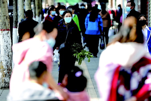 3月22日,在崆峒區(qū)圓通寺路,采購蔬菜的市民。記者 楊昕 攝