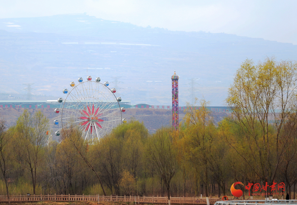 在濕地公園遠眺遇見蘭州摩天輪