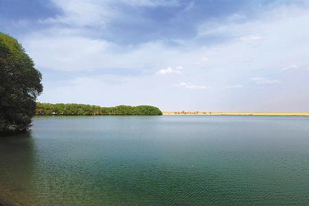 在渥洼池畔舉目遠(yuǎn)眺,在阿爾金山皚皚白雪的映襯下,偌大的渥洼池顯得安靜祥和,廣闊的水域就像一面鏡子,鑲嵌在大漠深處,在陽(yáng)光的折射下顯得格外深邃而內(nèi)斂。渥洼池畔茂密的灌木林和高大密集的蘆葦蕩,將一汪湖水浸染的泛著黛綠,蘆葦和灌木在湖水滋潤(rùn)下郁郁蔥蔥,高低錯(cuò)落有致,大有阡陌縱橫之勢(shì)。西岸不遠(yuǎn)處,南北迤邐著一座兩公里有余的沙坡頭,猶如一條盤旋的黃龍,亙?cè)诤奈鬟厯u頭擺尾,它曾經(jīng)以每年兩至三米的速度,肆無忌憚地向渥洼池水域逼進(jìn)。不過,在陽(yáng)關(guān)保護(hù)區(qū)的精心培育下,一片密集的蘆葦,已經(jīng)爬到了沙梁頂上,將這條黃龍死死地鎖在原地,動(dòng)彈不得。